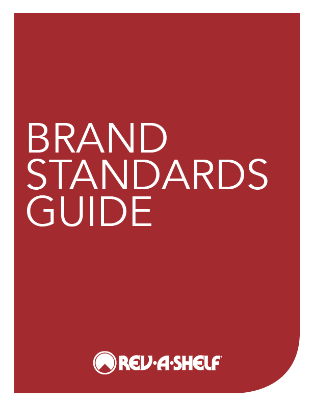 If space allows, use the Rev-A-Shelf logo with the tag line "Innovation through Organization". This was tradmarked in 2013 as part of our whole home approach to cabinet organization.